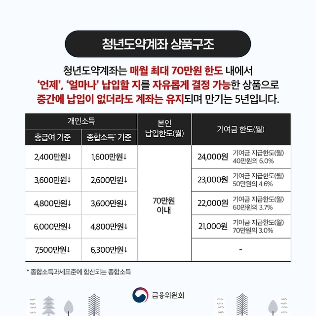 청년의 중장기 자산형성 지원을 위한 정책형 금융상품으로,