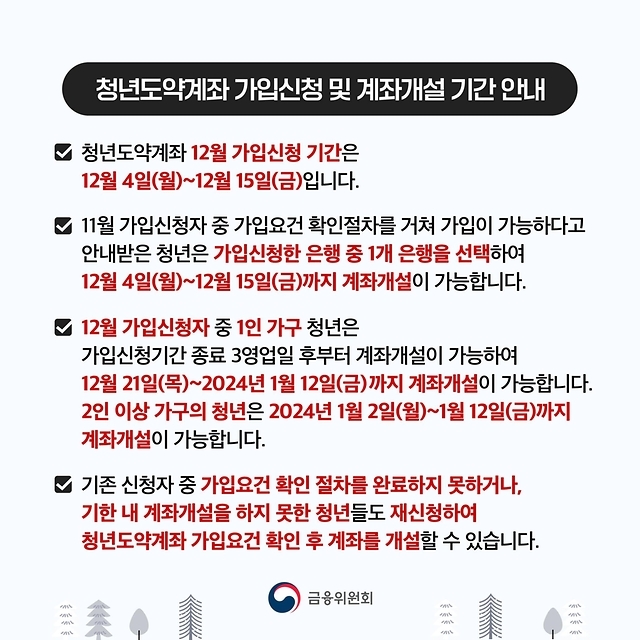 (1인 가구 청년은 12월부터 가입신청을 한 해당 월에 계좌 개설 가능)