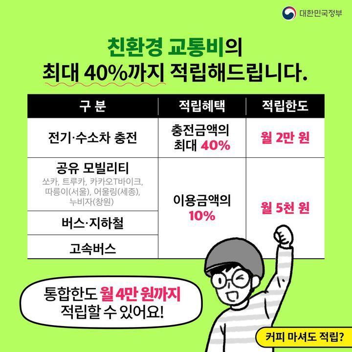 친환경 교통비 혜택이 늘어났다고 합니다.