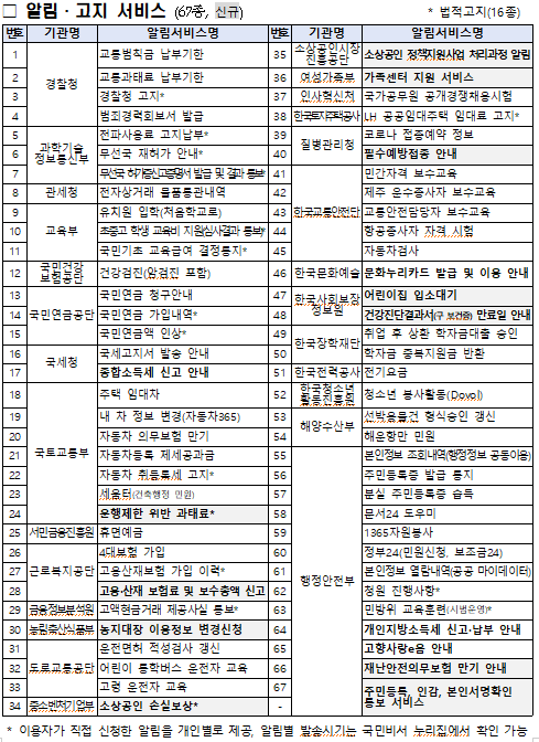 이번에 추가된 주요 알림 서비스는 다음과 같습니다.