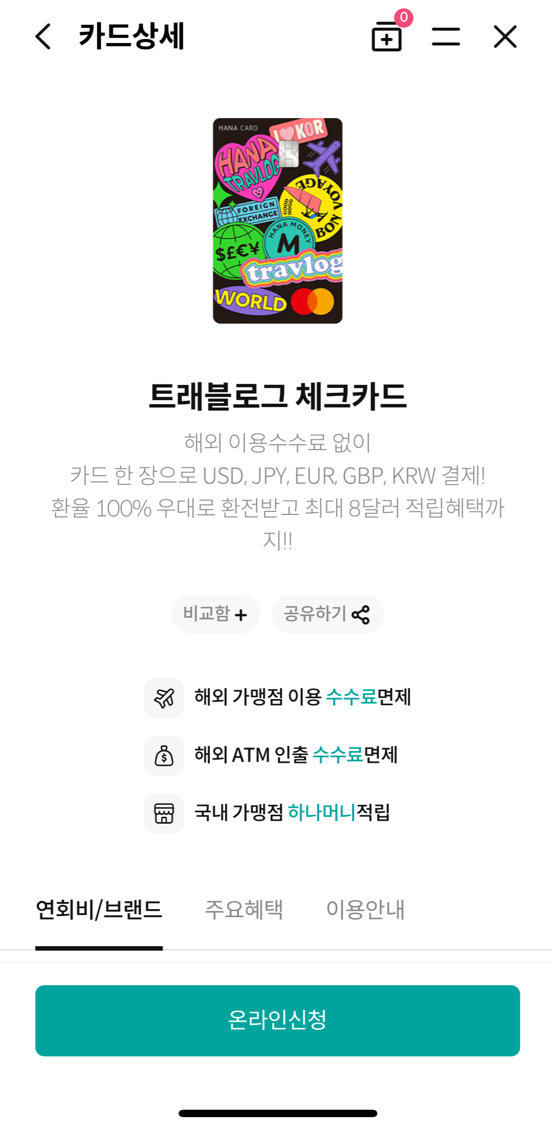 저도 얼마 후 해외 나갈 일이 있어서 해외여행 체크카드를 찾다가 우연히 발견하게 된 카드입니다.