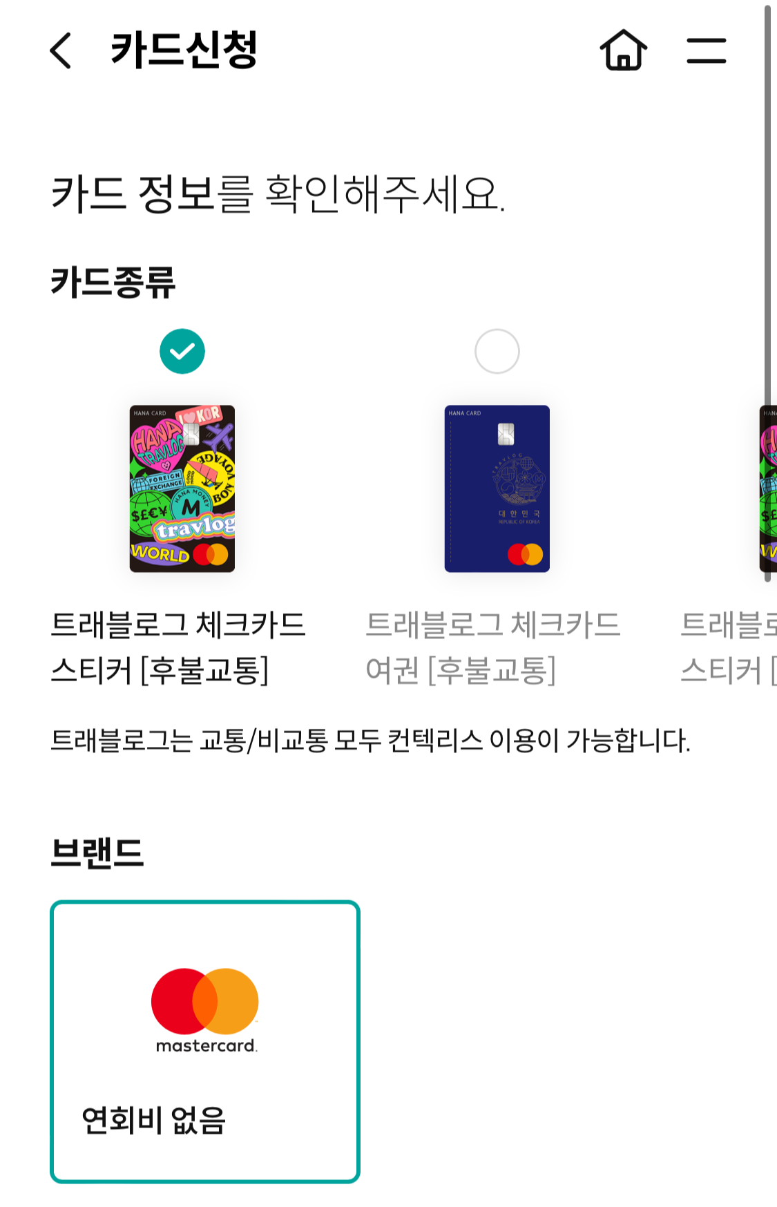 하나카드 어플에서 트래블로그 체크카드 발급받는 방법