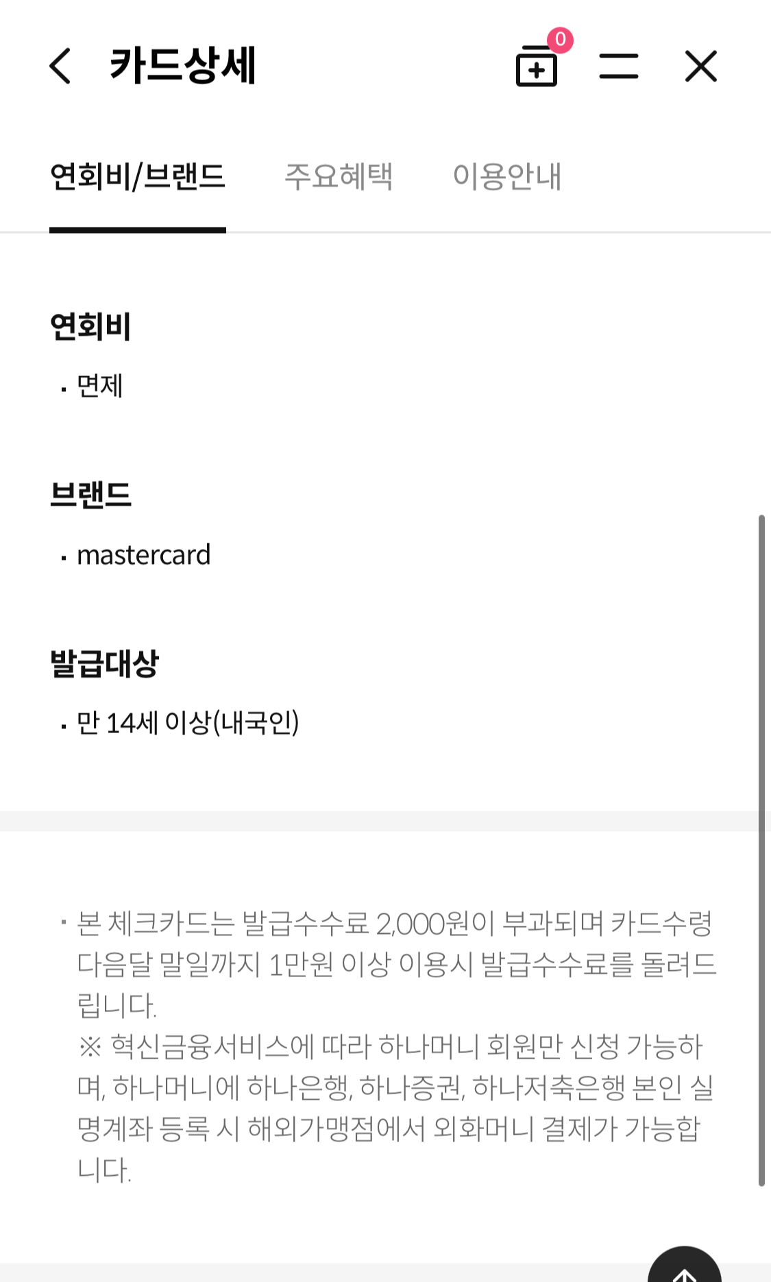 체크카드니까 연회비는 물론 없구요. 마스터카드입니다!