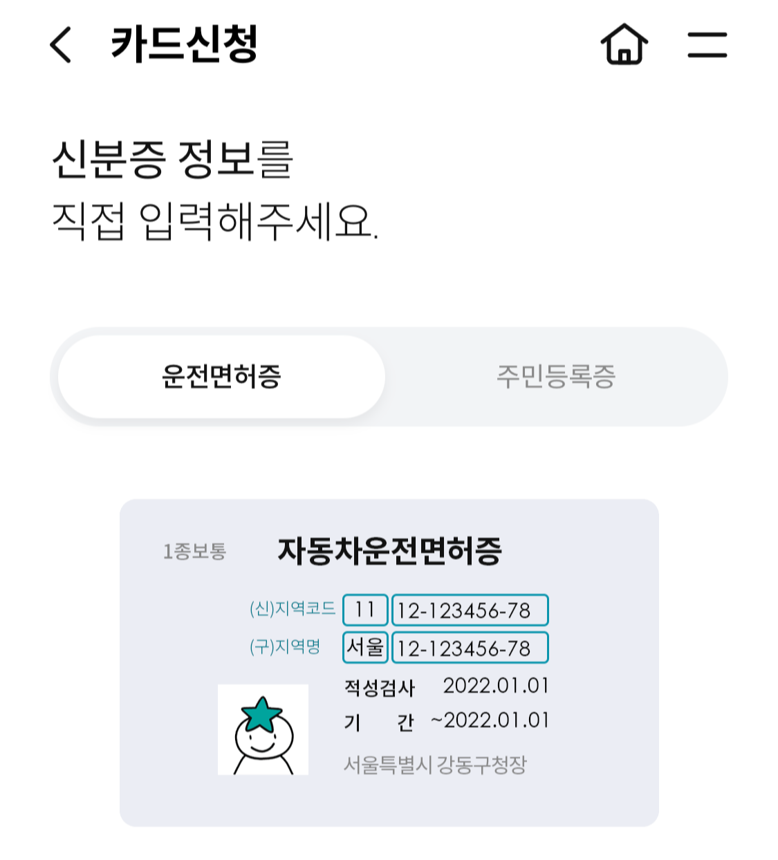 신분증 정보까지 입력하고 나면, 끝난 거나 다름없습니다. 카드 수령지를 선택해주면 끝이 나요. 참 쉽쥬?