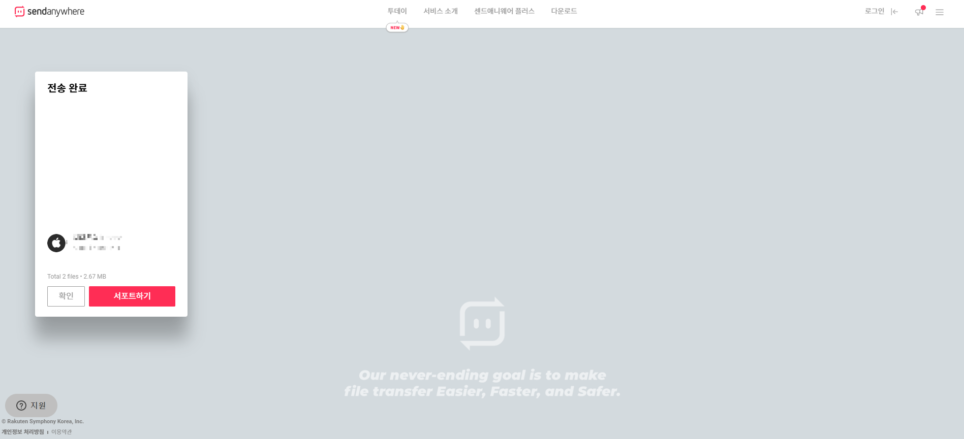 샌드애니웨어는 회원가입 없이도 간단하게 파일을 전송할 수 있었어요. 물론 광고를 5초 정도 봐야하지만, 샌드 애니웨어가 주는 편의성을 생각하면 10초도 봐줄 수 있을 것 같습니다.