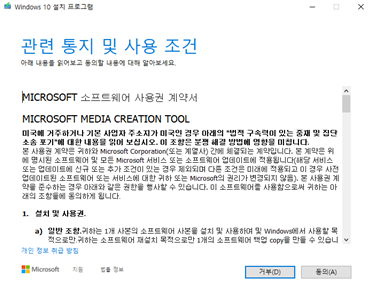 5. 윈도우10 설치 프로그램 관련 통지 및 사용 조건