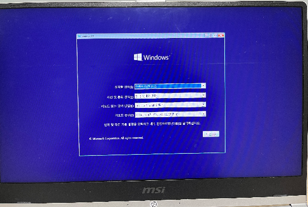 윈도우 부팅 USB를 설치할 때 이미 입력을 해두었기 때문에 그냥 두셔도 무방합니다. 다음 버튼을 눌러주세요.