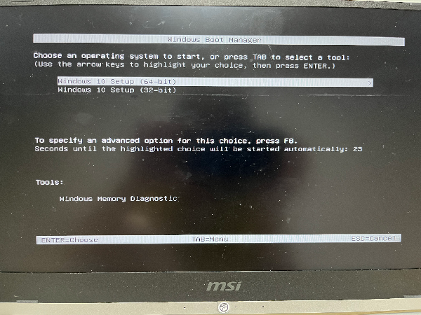 BOOT 옵션까지 선택해주었다면 이런 검정 화면이 뜨는데요, WINDOWS10 SETUP 64비트를 선택해줍니다.