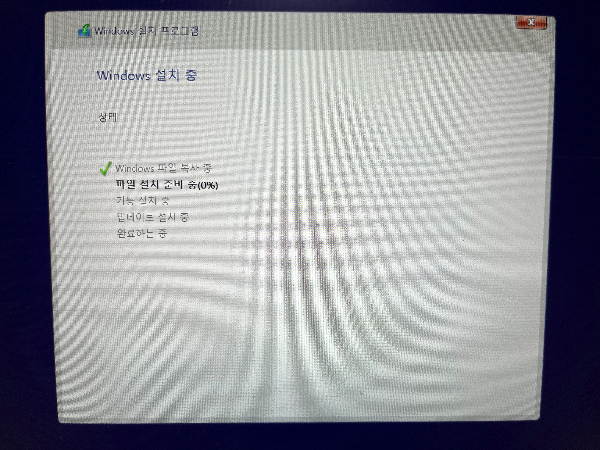 이 단계까지 마쳤다면 끝난거나 다름없습니다. 윈도우 설치가 자동으로 이루어집니다. 조금만 기다려주세요.