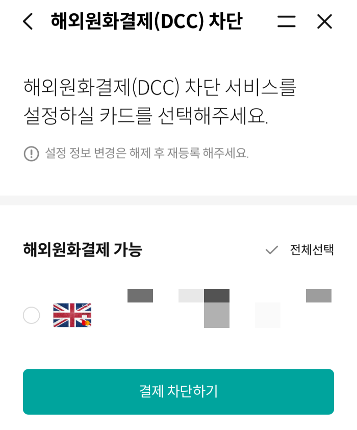 하나카드 어플에서 해외원화결제 차단/해제하는 방법