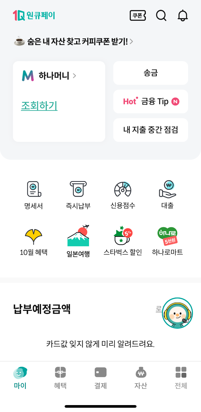 하나비바X체크카드 정보 입력을 분명히 정확하게 했음에도 불구하고, 계속 결제 불가 메시지가 떴어요. 아무리 생각해도 이상해서 하나카드 어플에 접속을 해보았습니다.